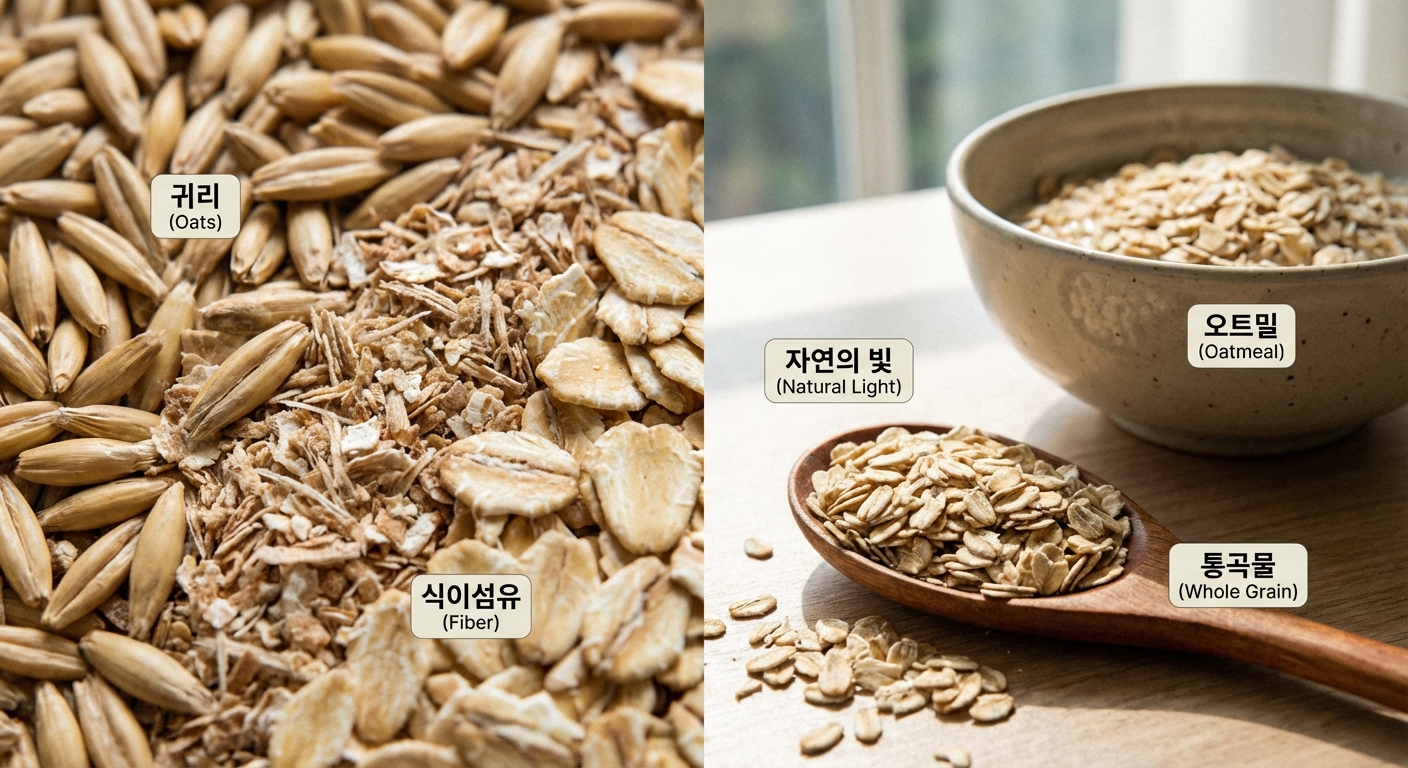 귀리 효능의 핵심은 수용성 식이섬유인 '베타글루칸'에 있습니다. 많은 분이 궁금해하시는 오트밀과의 차이점, 섭취 방법, 그리고 주의해야 할 부작용까지 꼼꼼하게 정리해 드리겠습니다.