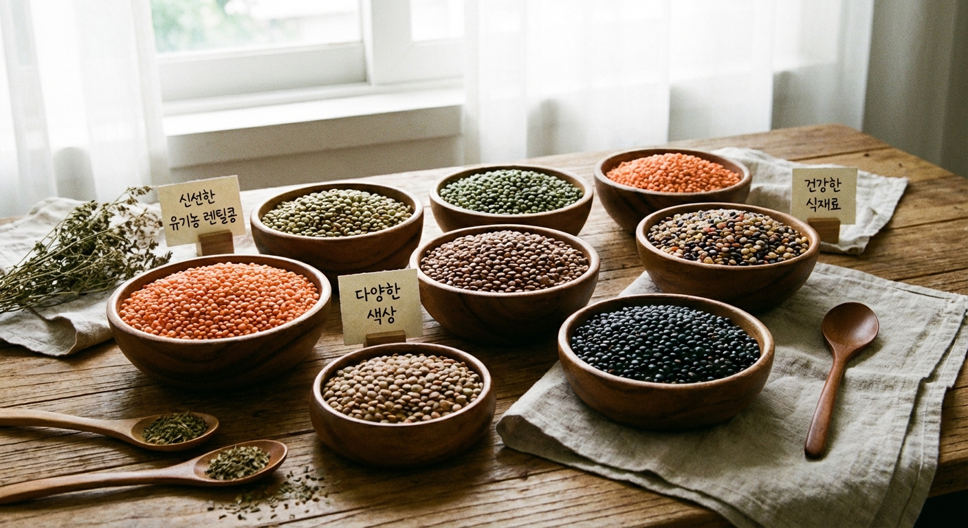 | 브라운 렌틸콩 | 껍질이 있어 식감이 단단하고 고소함 | 스튜, 카레, 샐러드 | 약 20-30분 |