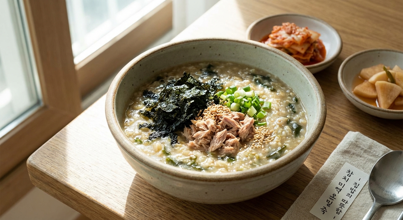 오트밀과 물을 넣고 끓이다가 불린 미역과 참치(기름 뺀 것)를 넣고 끓이면 참치 미역죽과 매우 유사한 맛이 납니다. 참기름 한 방울로 마무리하면 고소함이 배가됩니다.