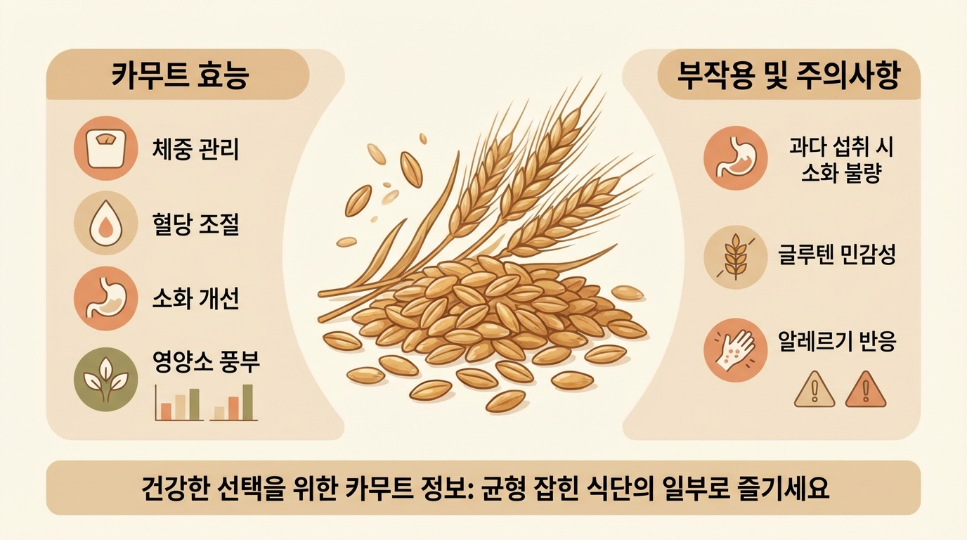 📌 한눈에 보는 카무트 효능 부작용 핵심 정리