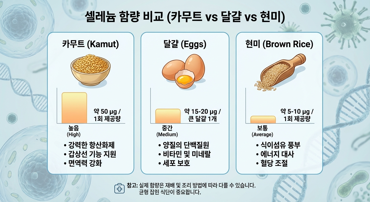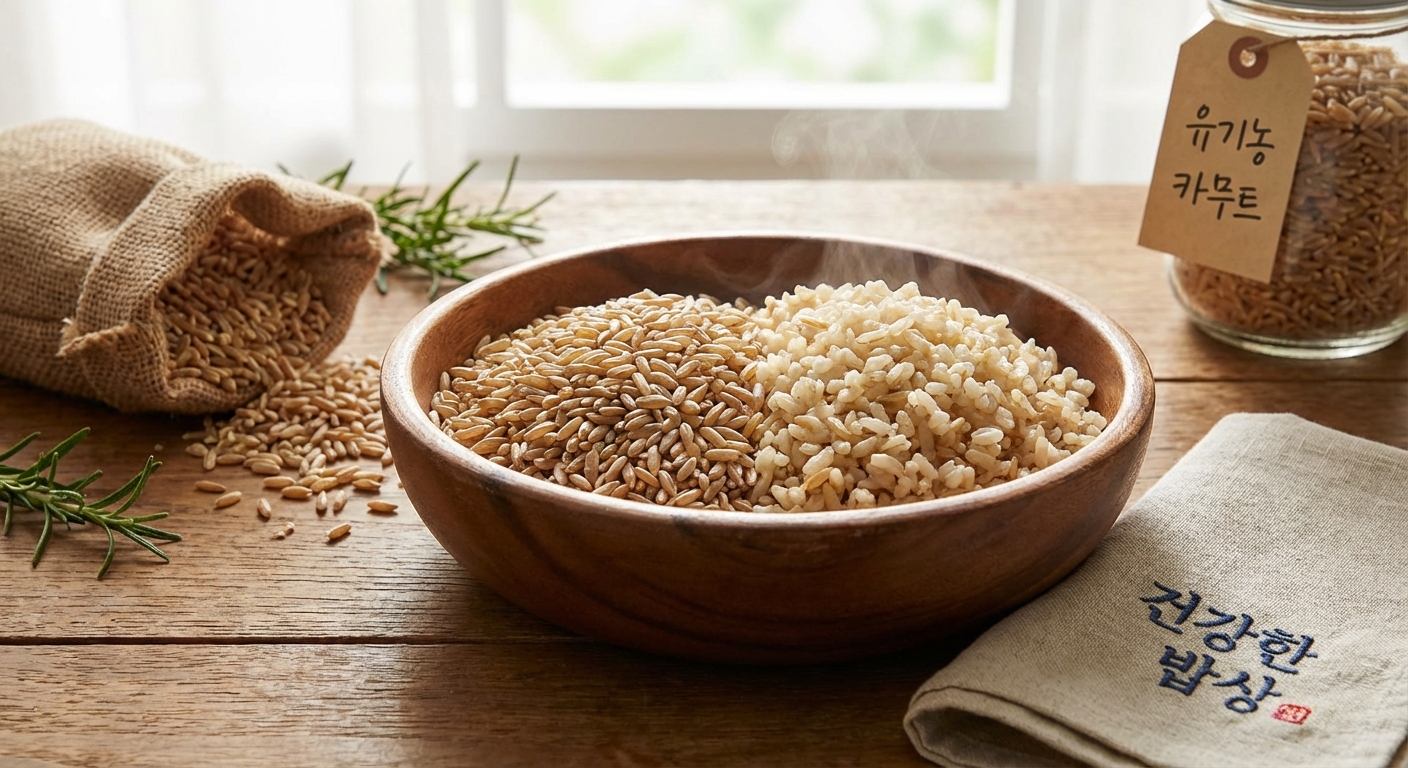 💡 TIP: 단백질 섭취가 중요한 중장년층이나 성장기 어린이에게는 백미 밥보다 카무트를 섞은 잡곡밥이 영양학적으로 훨씬 유리합니다.