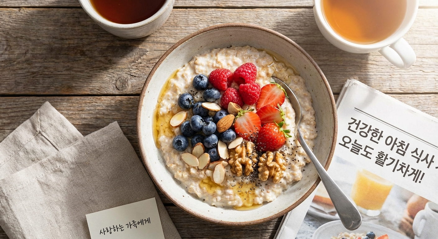 💡 TIP: 전날 밤 밀폐 용기에 오트밀과 우유(또는 요거트)를 부어 냉장고에 넣어두는 '오버나이트 오트밀'을 만들어 보세요. 밤새 귀리가 부드럽게 불어 아침에 바로 먹기 좋은 상태가 됩니다.