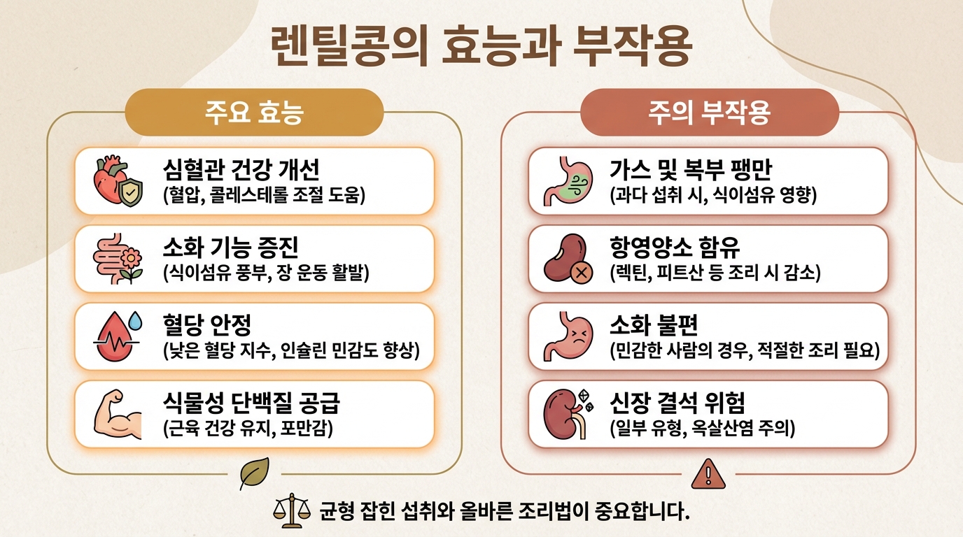 어떤 식재료든 장점과 주의점을 명확히 아는 것이 건강의 첫걸음입니다. 올바른 식습관 형성을 위해 렌틸콩 효능 부작용을 상세히 살펴보겠습니다.
