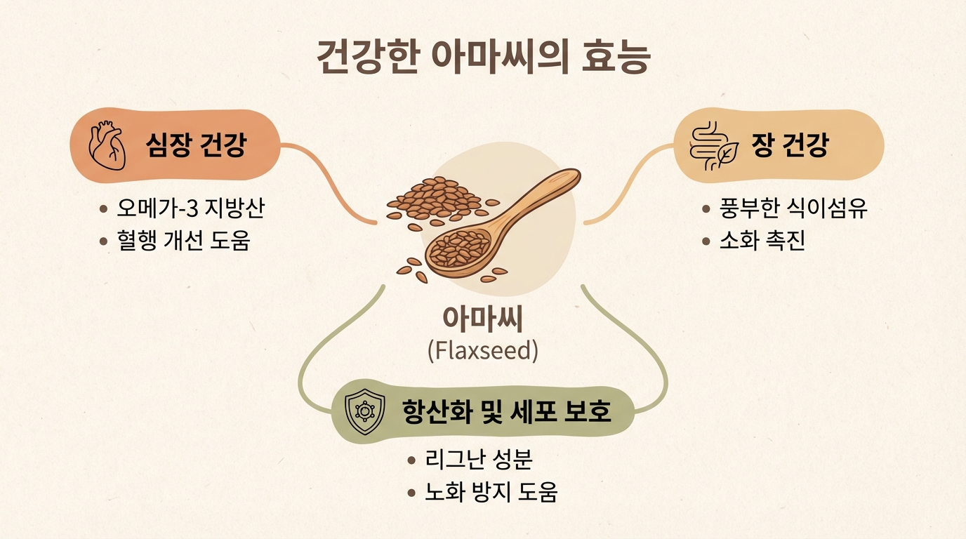 💡 한 문장 결론: 아마씨는 오메가3와 리그난이 풍부한 곡물로, 반드시 볶아서 적정량을 꾸준히 섭취하는 것이 핵심입니다.