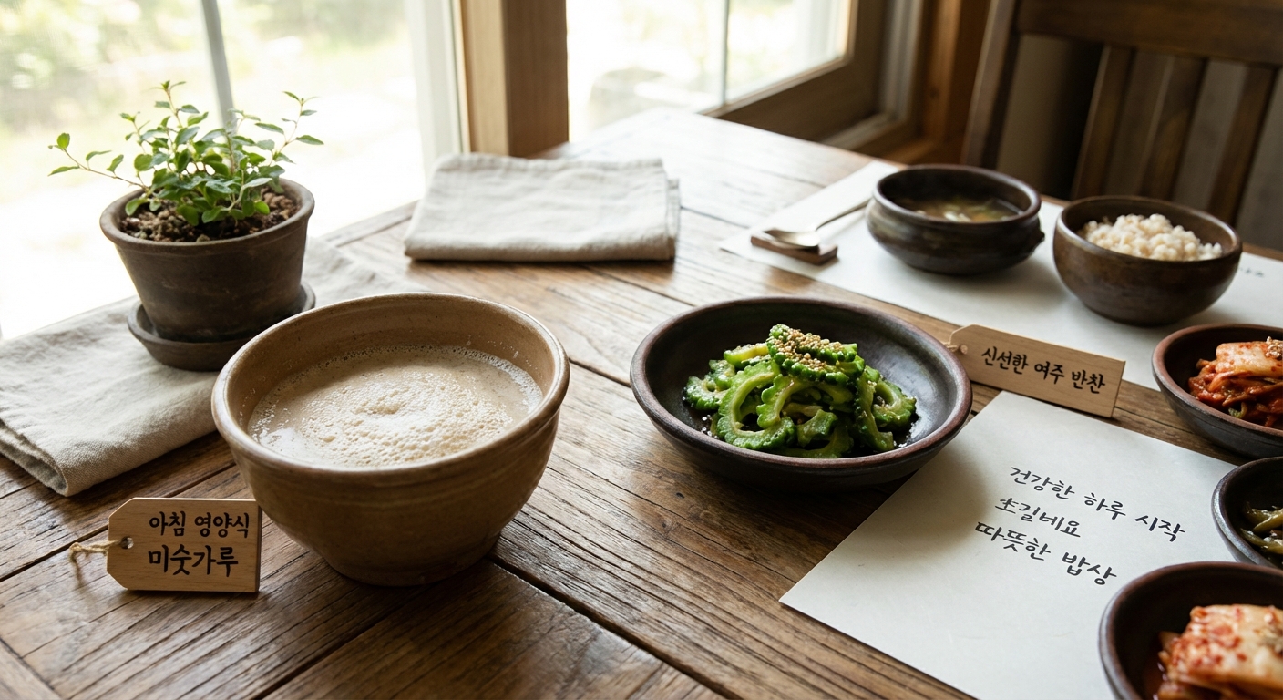 바쁜 아침, 우유나 아몬드 밀크 200ml에 곡물 선식 2스푼을 넣고, 여주 분말을 아주 소량(0.5g) 톡 떨어뜨려 섞어보세요. 고소함 속에 은은한 쌉싸름함이 더해져 입맛을 돋우는 건강한 아침 식사가 완성됩니다.