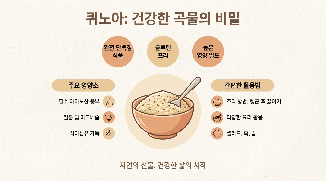 💡 한 문장 결론: 퀴노아는 완벽에 가까운 영양 밸런스를 제공하지만, 올바른 세척과 적정 섭취량을 지켜야 건강하게 즐길 수 있습니다.
